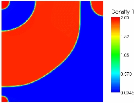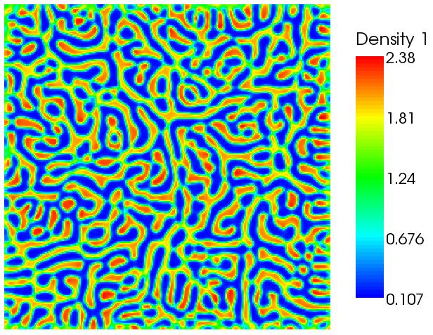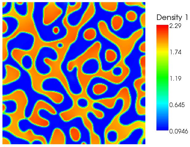 The above figures show the separation of the two phases, starting from an initial random state.